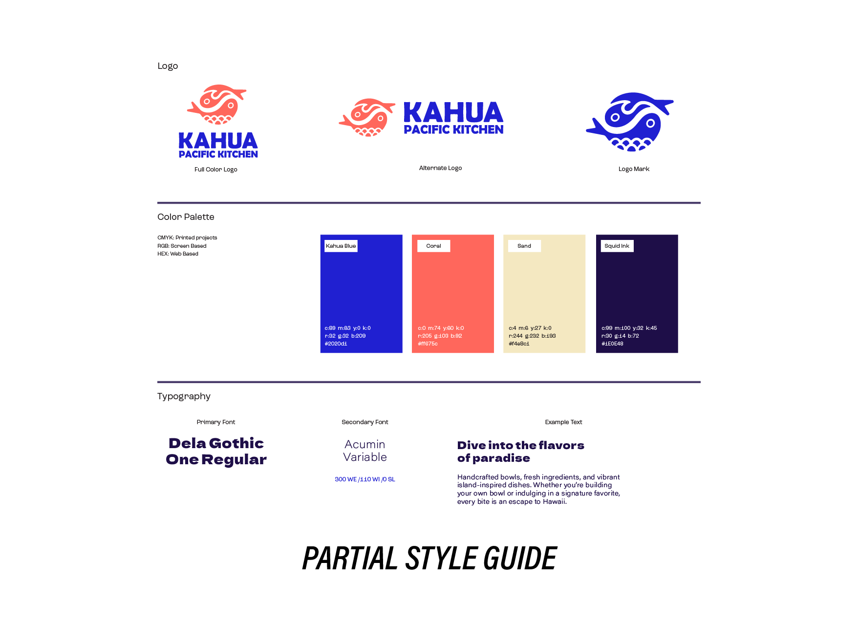 Hawaii Poke & Asian Express is a franchised fast casual restaurant with a popular location in Corpus Christi, Texas. In partnership with co-designer Hameen Reynolds, we completely reimagined the brand as Kahua Pacific Kitchen; conceptually focused on integrating Japanese and Hawaiian cultural design influences in a way that was accessible, exciting, and inviting to a South Texan audience.