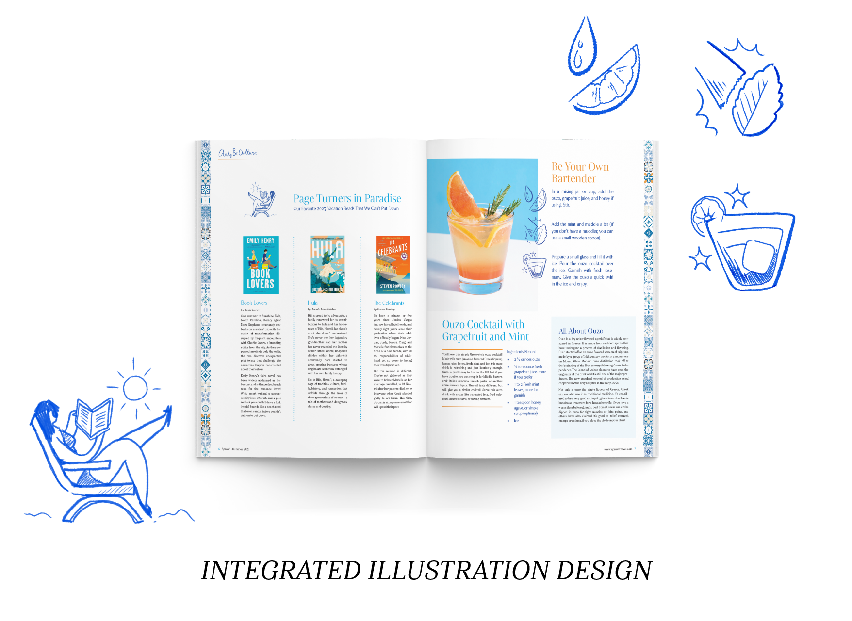Sprawl Magazine is a travel and lifestyle magazine focusing on the visual beauty of Earth’s architectural wonders and their intersectionality with the beauty of nature. Issues are released quarterly, with each focusing in on a different travel destination and exploring travel tips, local hot spots, cultural phenom, and travel lifestyle articles. This issue of Sprawl explored the delight of Grecian design influence; dreamy colors, geometric tiled patterns, and architectural illustration in a love letter to the Greek isles.
